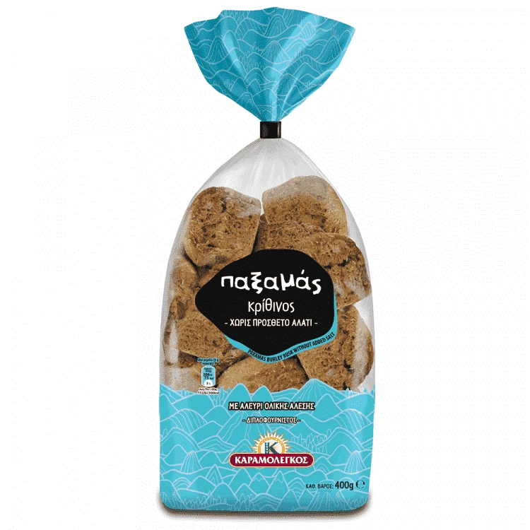Παξιμάδι κρίθινο χωρίς πρόσθετο αλάτι με αλεύρι ολικής 400 γρ.
