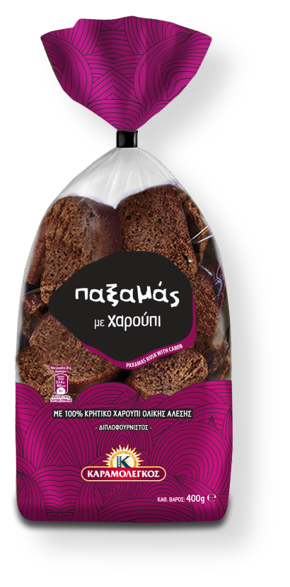 Διπλοφουρνιστός και τραγανός, παξαμάς με χαρούπι . Τιμή τεμαχίου .