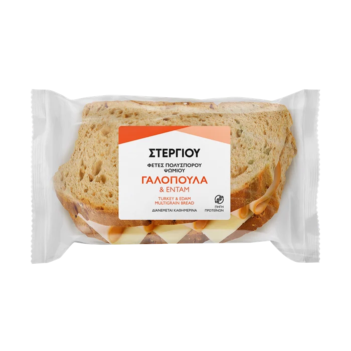Φέτες πολύσπορου ψωμιού με γαλοπούλα και ένταμ 185γρ