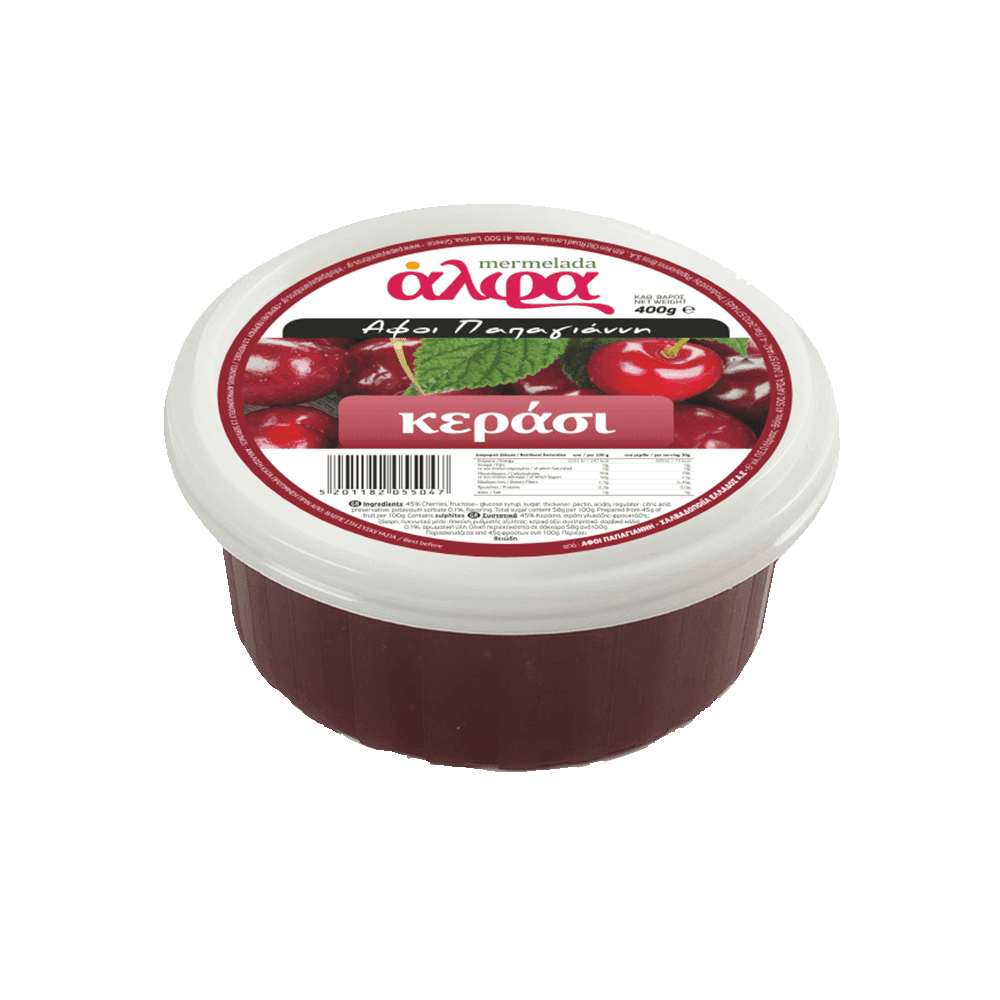 Γλυκιά, ζουμερή και γεμάτη αληθινή φρουτώδη γεύση. Μια κλασική επιλογή για όσους αγαπούν το έντονο άρωμα του κερασιού και θέλουν μια μερμελάδα που απογειώνει κάθε πρωινό ή σνακ. Συσκευασία 5Kg