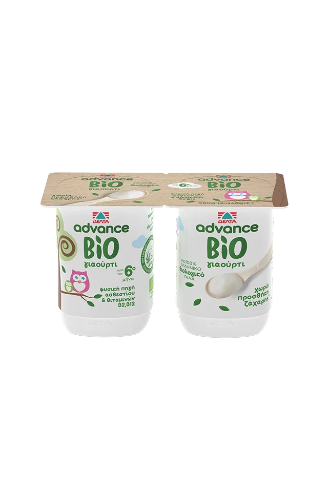 Νέα βρεφική σειρά Advance Bio με το πρώτο βρεφικό βιολογικό γιαούρτι στην Ελλάδα από τον 6ο μήνα, από 100% ελληνικό βιολογικό γάλα ΔΕΛΤΑ, χωρίς προσθήκη ζάχαρης, μόνο με φυσικά συστατικά.