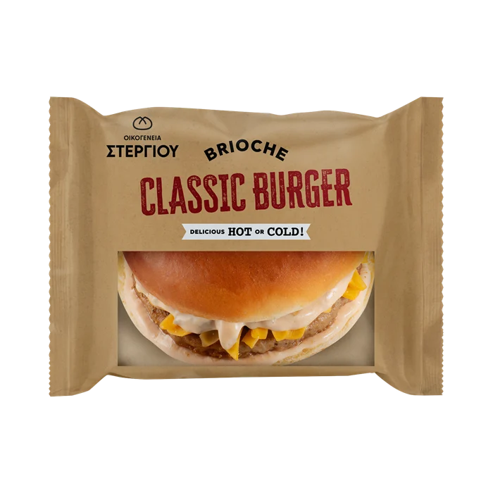 Στο burger αυτό έχουμε αντικαταστήσει το κλασικό ψωμάκι με μαλακό brioche με υπέροχο άρωμα βουτύρου. Στη συνέχεια για γέμιση έχουμε χρησιμοποιήσει ζουμερό XXL μπιφτέκι 85γρ το οποίο συνοδεύουμε με τυρί cheddar και σάλτσα ταρτάρ. Ένας αρμονικός και χορταστικός συνδυασμός γεύσης για ζεστή ή κρύα απόλαυση! Η συσκευασία είναι θερμοάντοχη και κατάλληλη για αναθέρμανση σε θερμοθάλαμο.